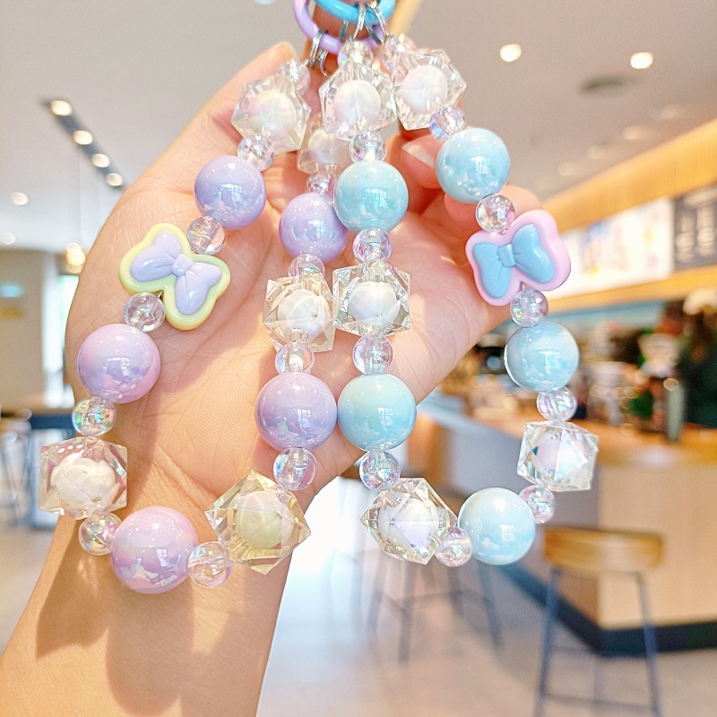 Baru warna permen busur manik rantai gantungan kunci lucu dopamin perempuan tas liontin kunci ponsel rantai hadiah