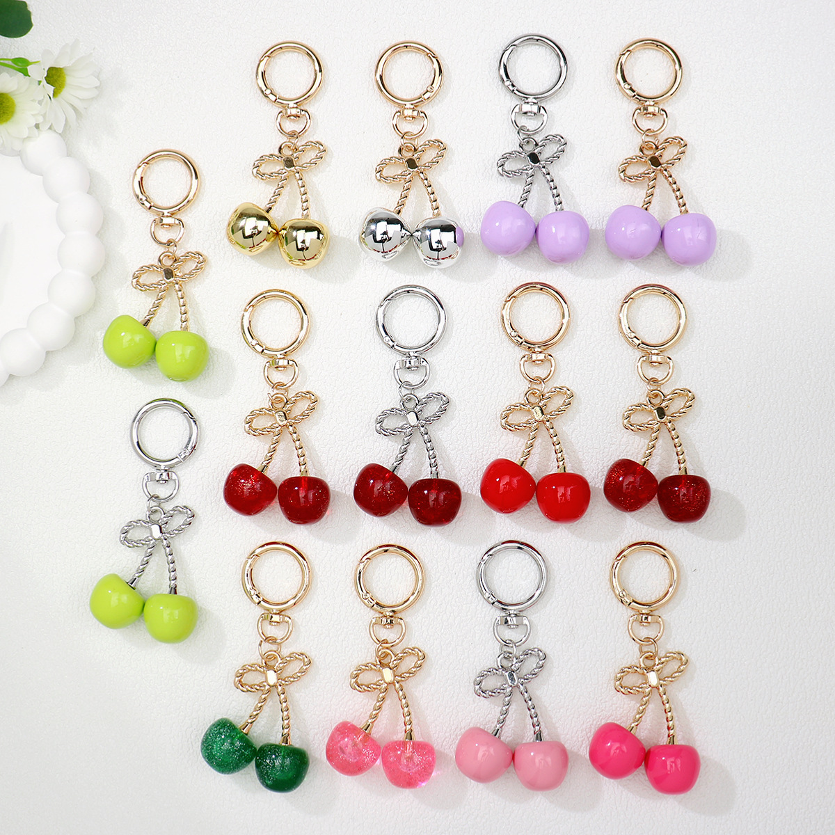 Perhiasan Gantungan Kunci Ceri Imut Warna Permen Dekorasi Tas Buah Tiga Dimensi Indah Aksesori Gantungan Ponsel