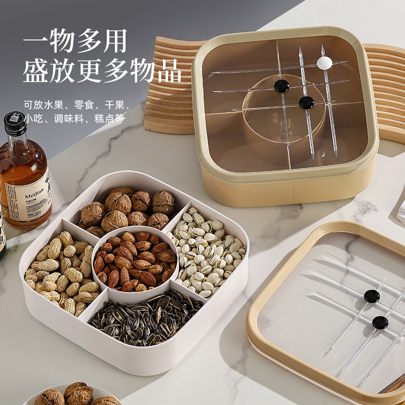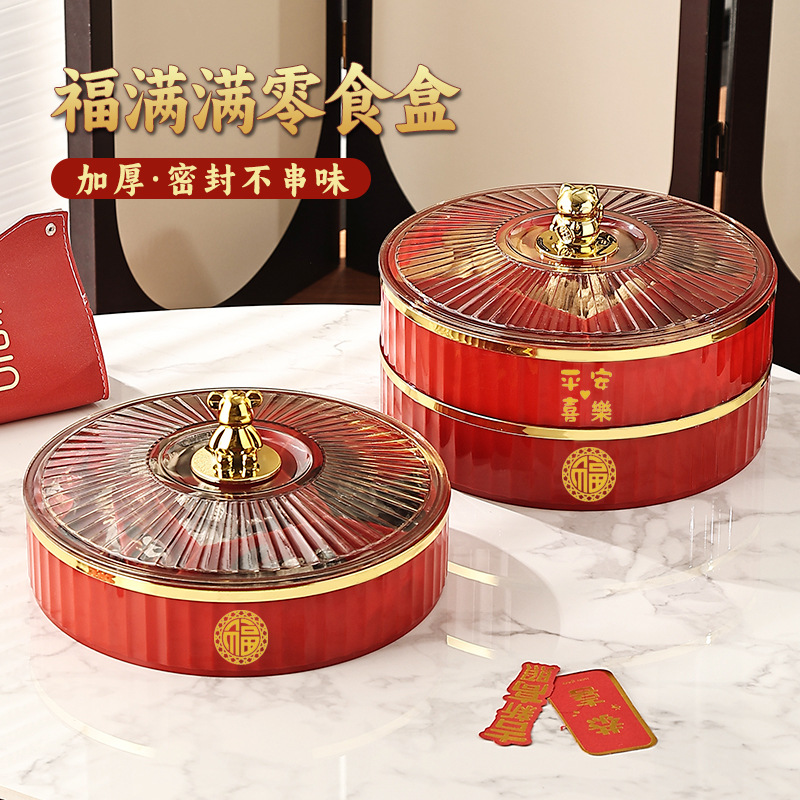 Piring buah gaya China, baru dengan tutup dan kisi kreatif go kotak makanan ringan ruang tamu anti kelembaban biji melon kacang Tahun Baru permen