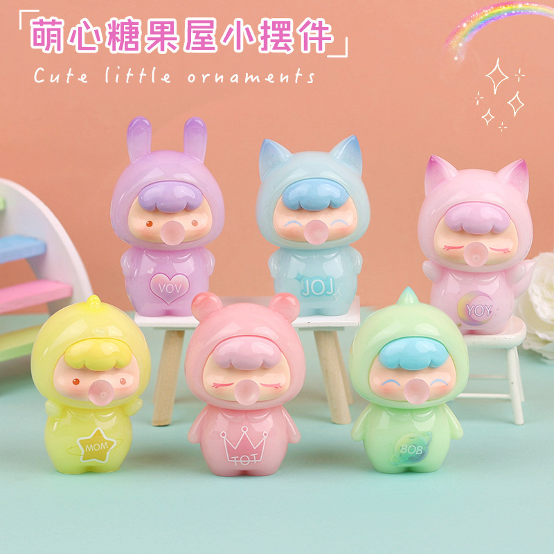 Ornamen kecil rumah permen hati imut, ornamen dekorasi desktop kerajinan resin kartun lucu