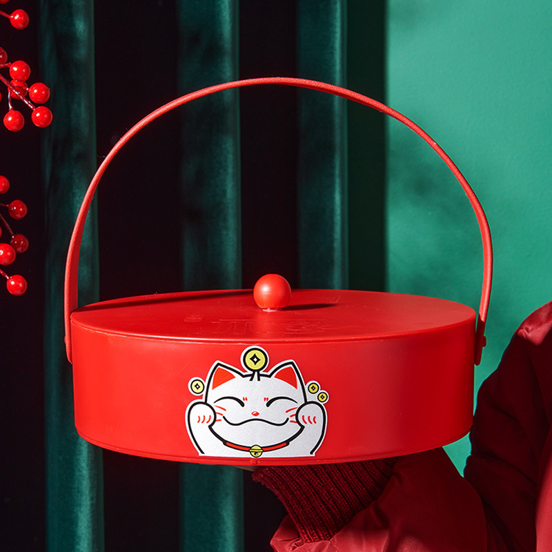 Kotak buah kering Tahun Baru, piring permen kucing keberuntungan gaya Cina kreatif dengan tutup tertutup kotak kacang pernikahan