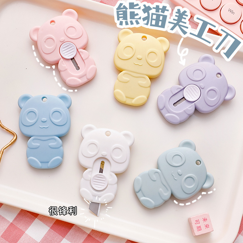 Pisau seni beruang kartun portabel siswa, pisau kertas buatan tangan, alat tulis warna permen, pisau Unbox Ekspres