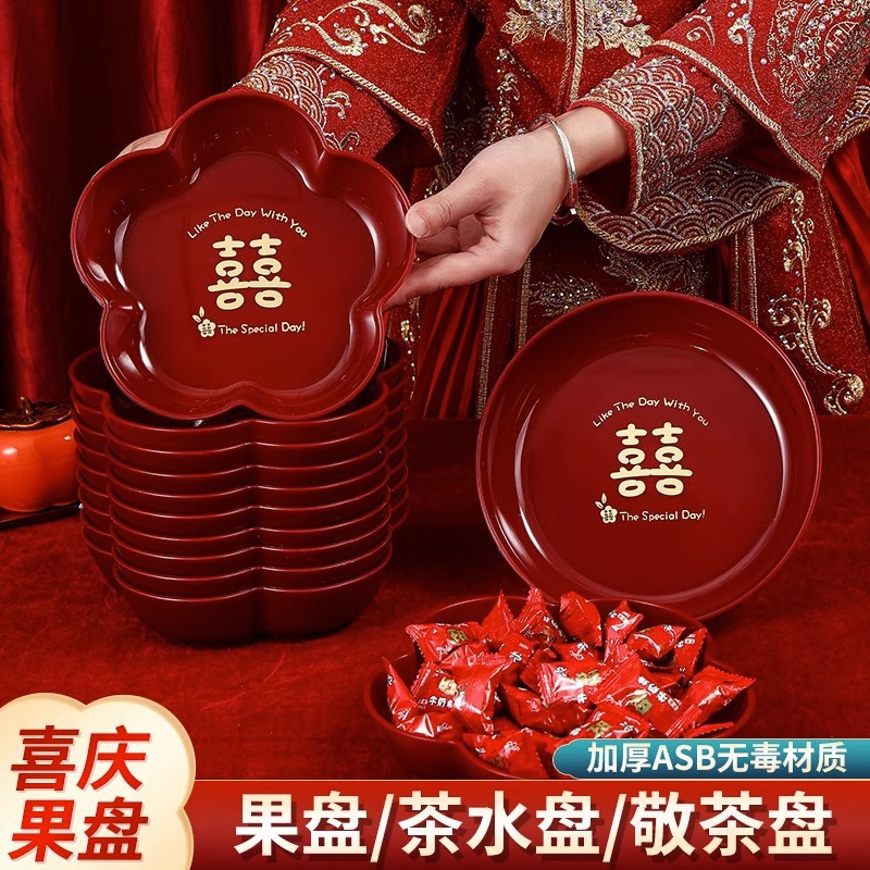 Piring buah merah pernikahan, ruang tamu meja kopi tahun baru piring buah kering piring permen rumah baru
