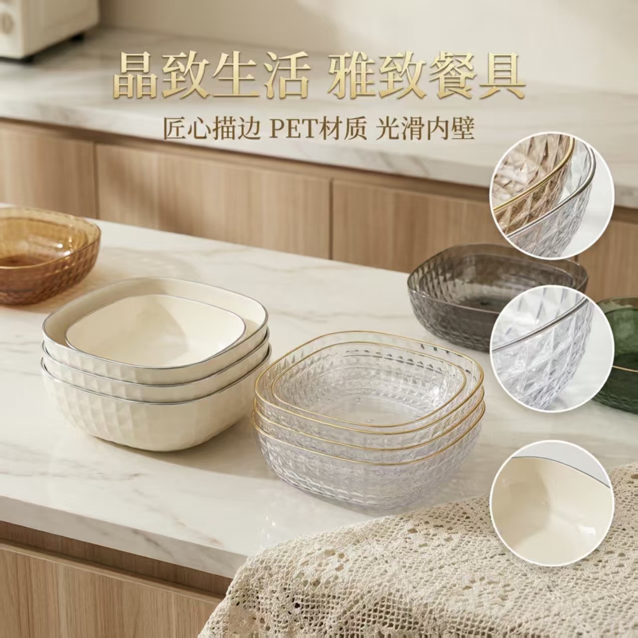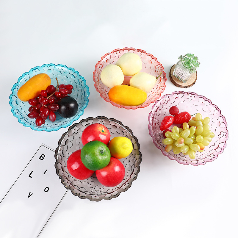 Piring buah plastik transparan pola bunga, piring buah kristal Rumah Tangga kering atas piring permen