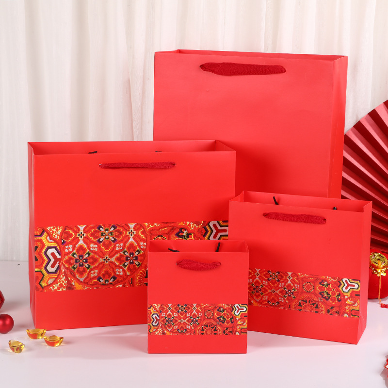 Tas hadiah Festival Musim Semi tas hadiah merah kreatif tas hadiah permen pernikahan tas kertas hadiah tas hadiah