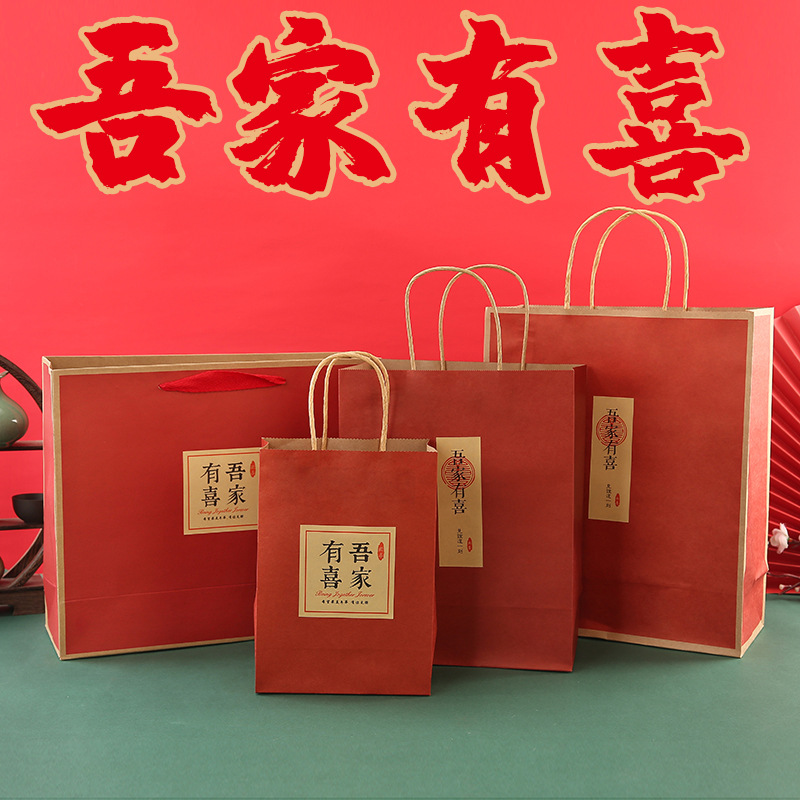 Tas tangan merah Tahun Baru, tas hadiah permen meriah pernikahan, tas kertas Kraft, hadiah kembali bulan penuh
