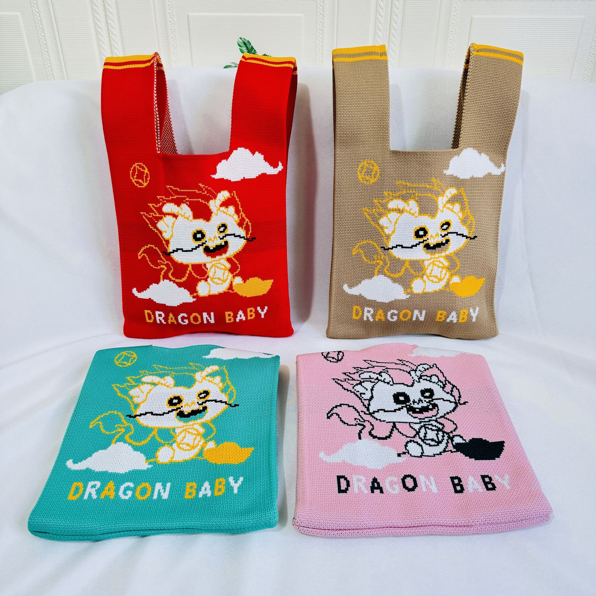 Dragon tahun baru rajutan hadiah tas pergelangan tangan mini tas ponsel serbaguna kapasitas besar permen hadiah tas tote