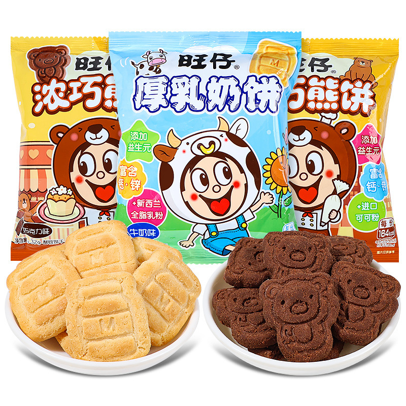 Want Want Want Want Kue Susu Tas 32G Kue Beruang Kecil Rasa Cokelat Kue Siswa TK Makanan Ringan