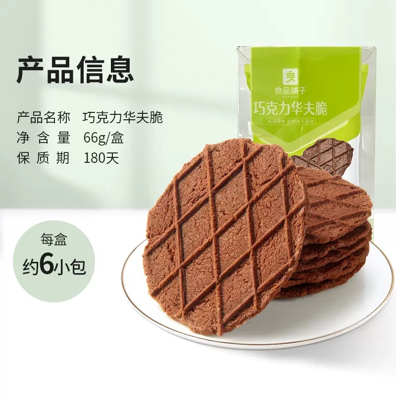 Liangpin shop wafel coklat biskuit renyah, kotak 66g makanan ringan kasual kantor grosir