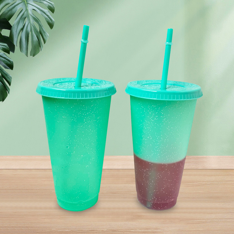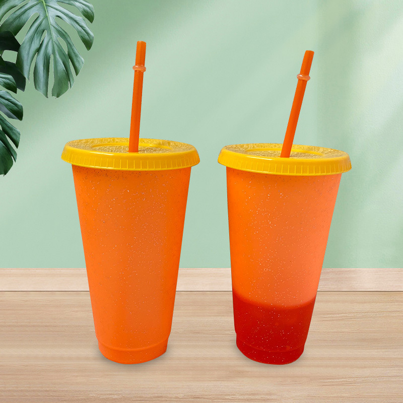 Pasokan langsung dari pabrik cangkir sedotan plastik warna permen lintas batas disesuaikan 700ml cangkir jus minuman dingin bahan PP Sederhana