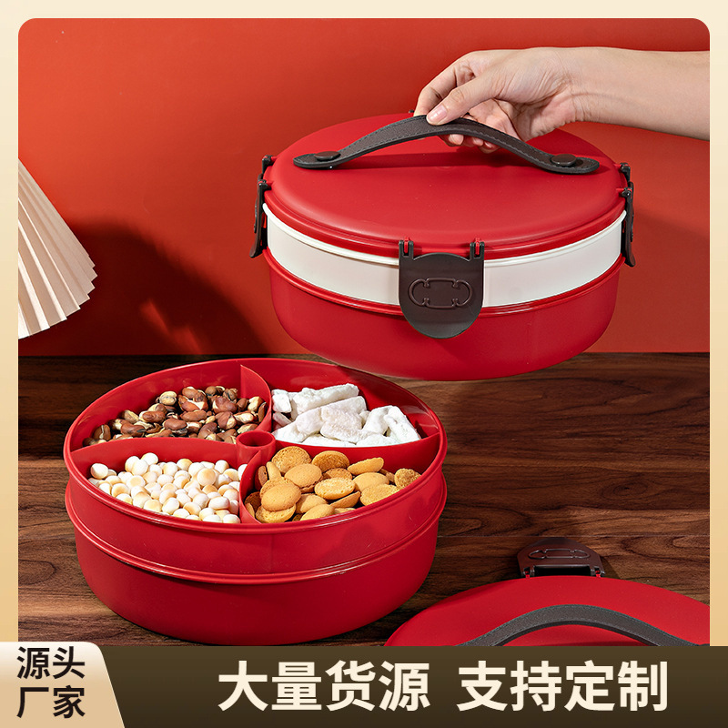 Piring hadiah buah pernikahan piring permen grid multi-lapisan ruang tamu Tahun Baru rumah kotak buah kering piring buah merah rumah tangga Cina