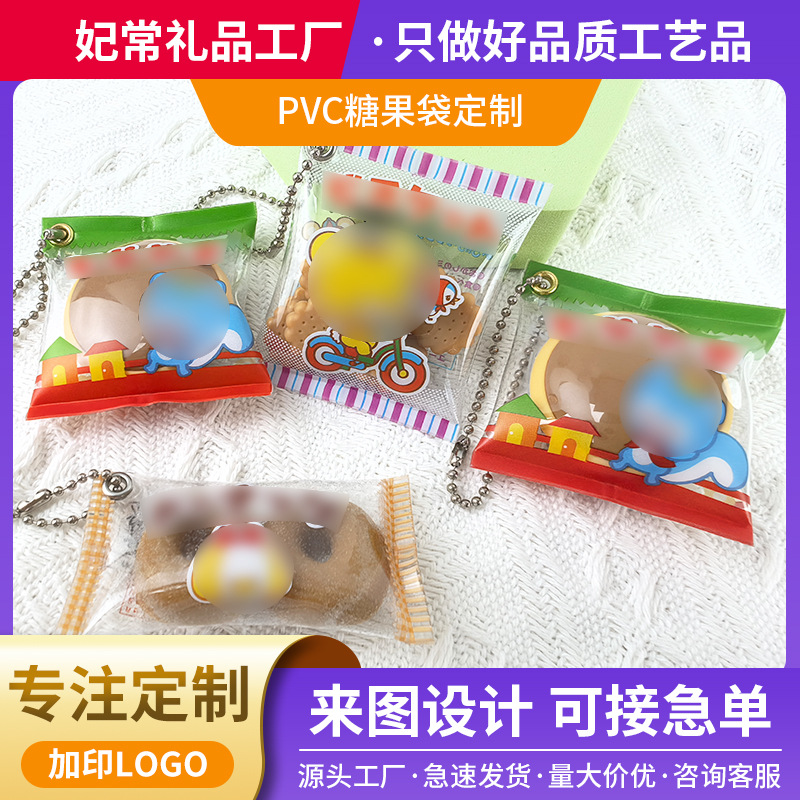 Tas Permen PVC Model Baru Kustom Liontin Transparan Tipis Hadiah Kartun Imitasi Gantungan Kunci Dorayaki untuk Makanan Ringan