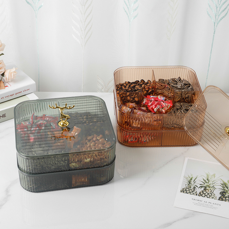 Piring buah kering akrilik transparan, kotak buah kering permen Tahun Baru dengan tutup kompartemen dua lapis, piring buah kering ruang tamu retro gaya Eropa