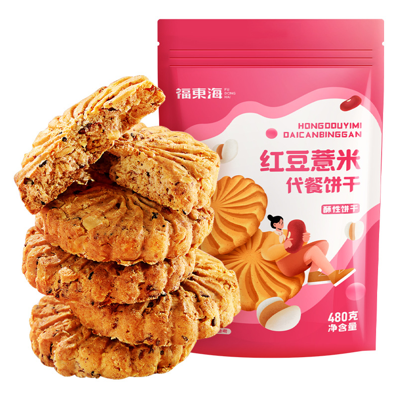 Fudong laut kacang merah coix biji kue 480g tas makanan ringan kering kue kacang merah coix biji bubuk coix biji kue kacang merah coix biji biskuit
