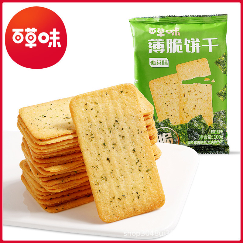 Biskuit renyah Herbal 100g, (rasa rumput laut) kotak pengukur 30 kemasan asin kasual makanan ringan