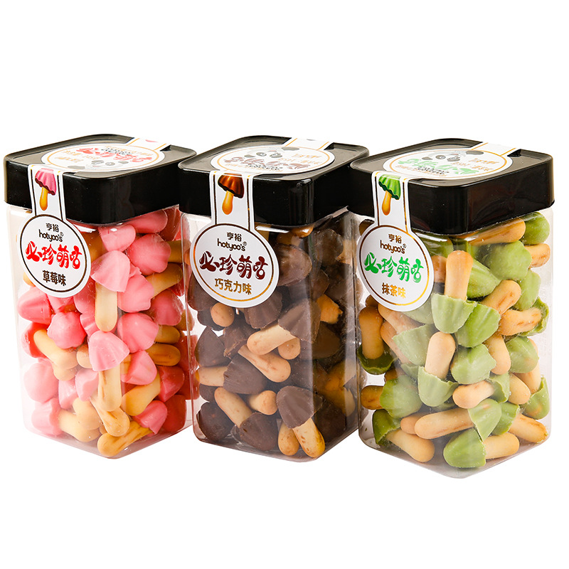 Bisheng gu rasa coklat kaleng stroberi kepala jamur kecil biskuit non-anak-anak Internet kasual makanan ringan lezat