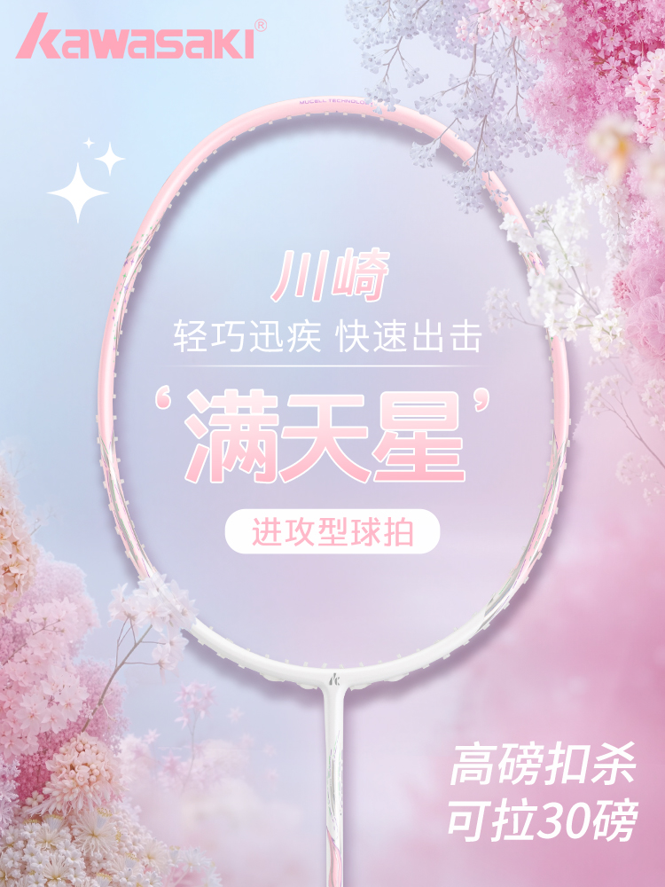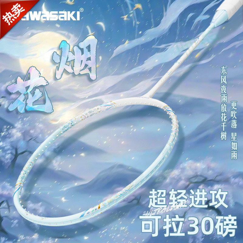 Raket Bulutangkis Kawasaki Serat Karbon Penuh Super Ringan dan Nilai Tinggi Kembang Api Siswa Hadiah Anak Perempuan 5U30 Pound Tunggal