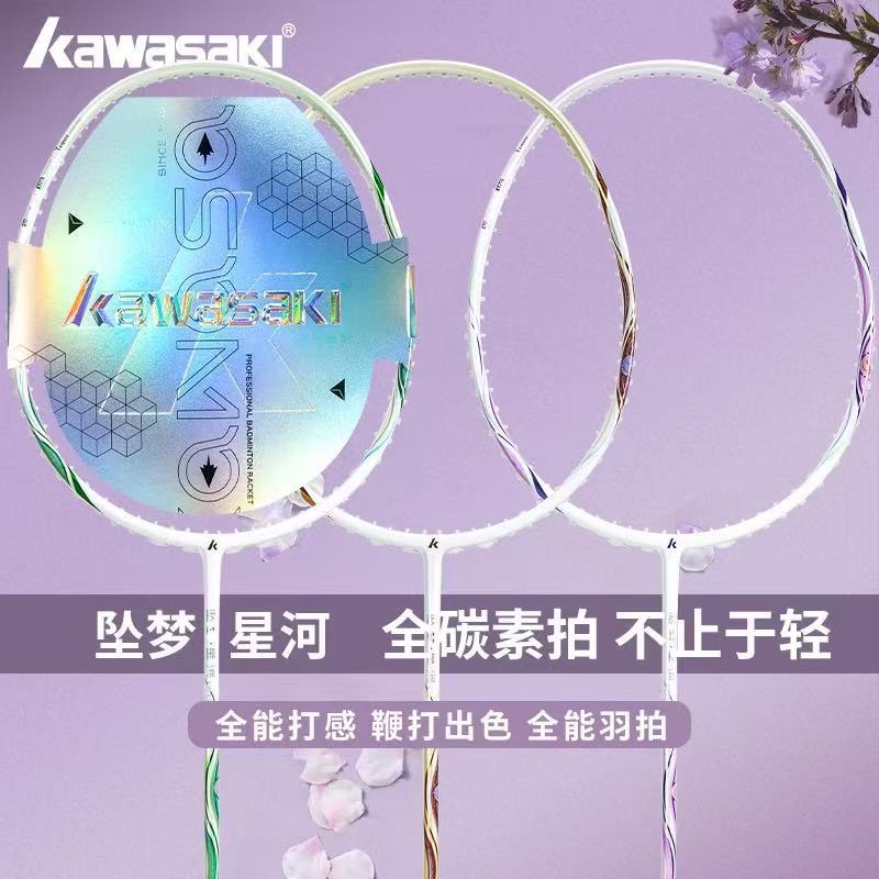 Raket Bulutangkis Resmi Kawasaki Produk Asli Toko Unggulan Dua Tembakan Serat Karbon Penuh Peralatan Super Ringan Set Pelajar Profesional