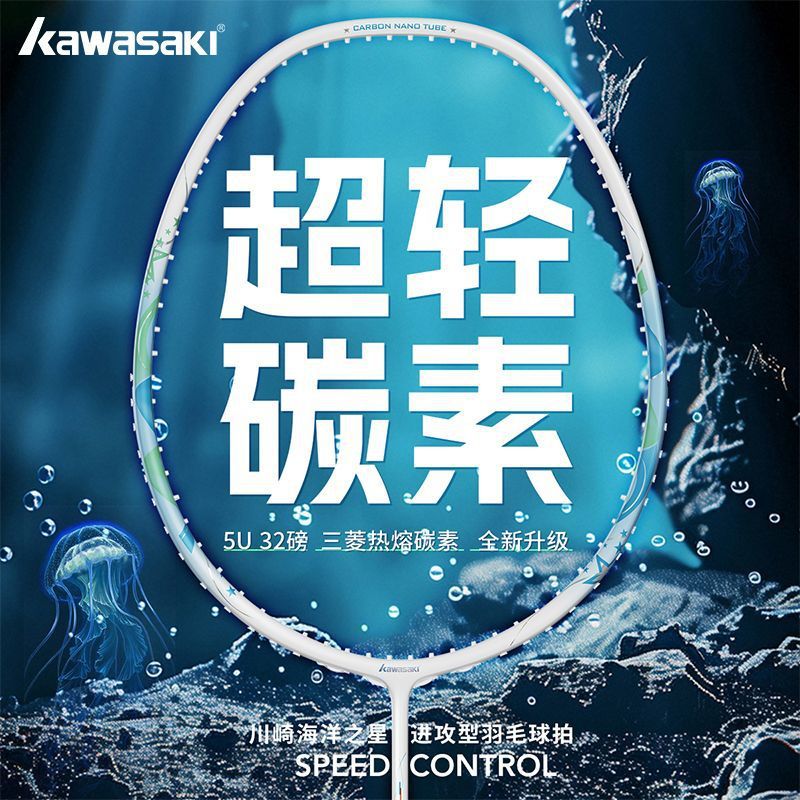 Raket Bulutangkis Karbon Penuh Kawasaki Ocean Star Super Ringan Pound Tinggi Serangan Kelas Profesional Nilai Wajah Tinggi Anak Laki-laki 5U Pound Tinggi