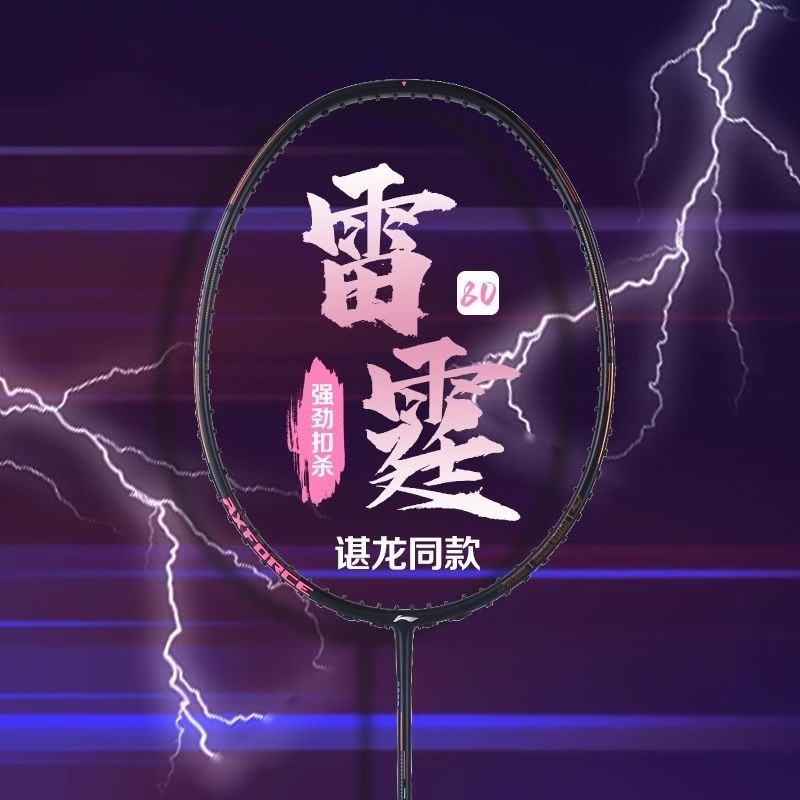 Raket badminton serat karbon, barang asli Li Ning Thunder 80 serangan Xiaolong toko unggulan resmi sama serat karbon penuh