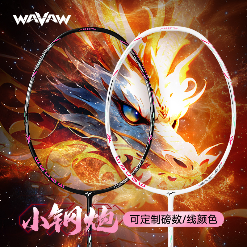 WAVAW Cannon Baja Kecil Super Ringan 4U Raket Bulu Tangkis Serat Karbon Penuh Tahan Serangan Set Profesional Resmi Satu Tembakan