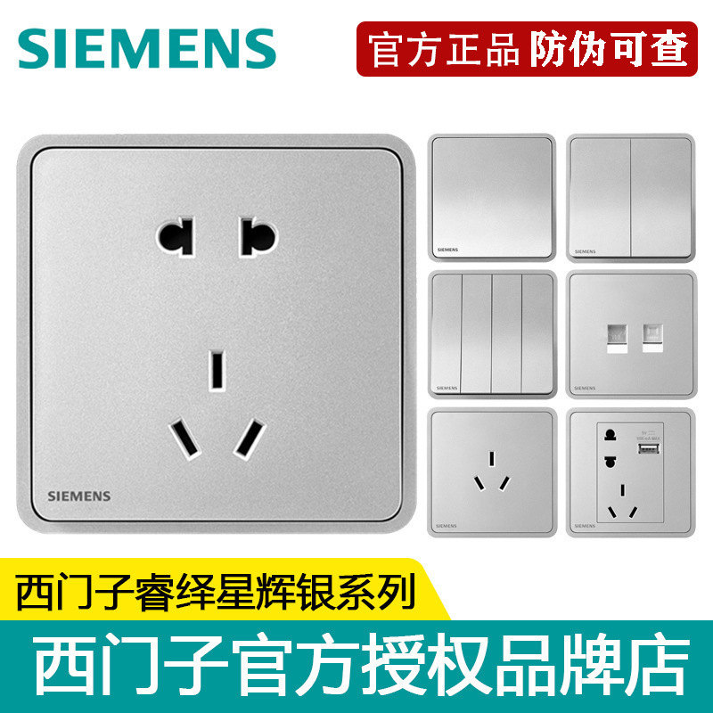 Siemens saklar dinding Ruirui Xingyao silver panel soket 10A16A tiga soket USB dua tiga steker