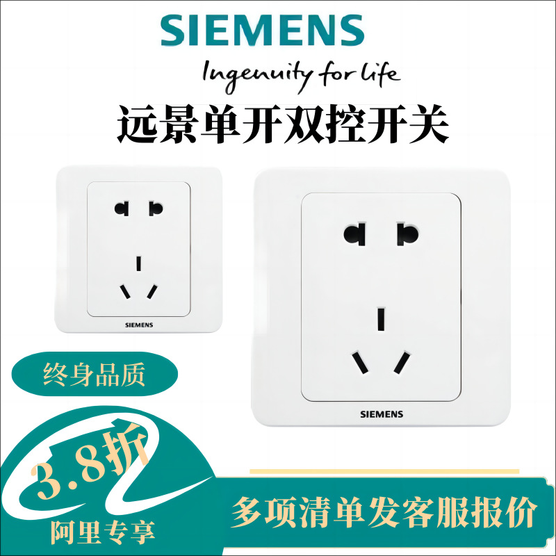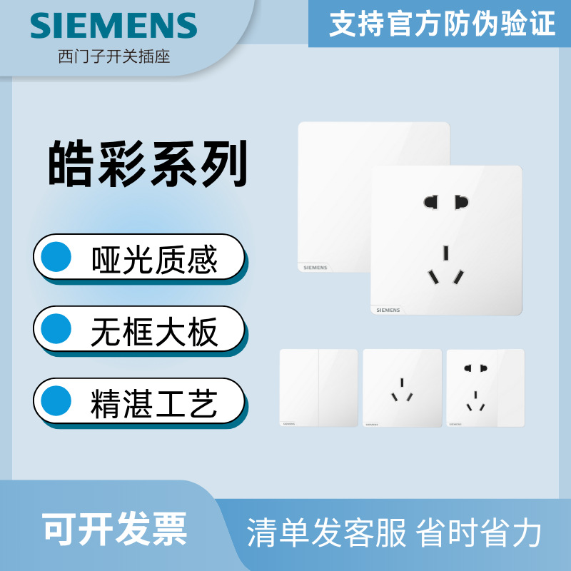 Siemens Haocai Seri Soket Panel Putih Tanpa Bingkai Panel Besar Tipe 86 Lima Lubang Dengan Saklar