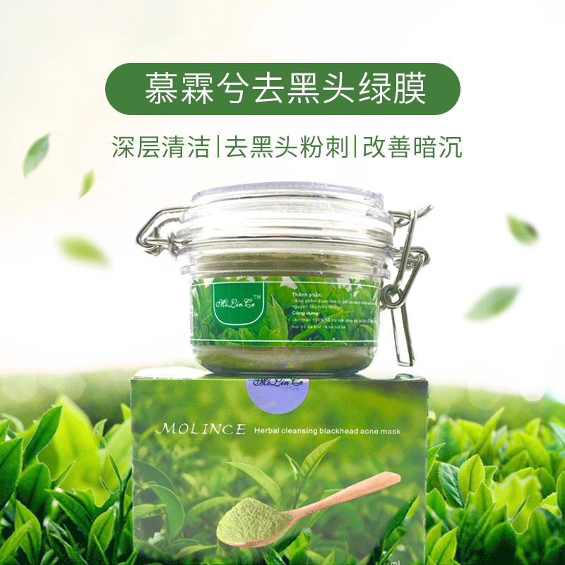 Mulin Xi blackhead menghilangkan bubuk teh hijau Vietnam, pembersihan pori-pori komedo menghilangkan jerawat maskara 120g