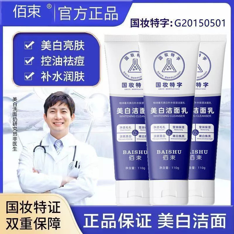 Pembersih wajah pemutih Baishu, Pembersih Wajah nikotinamida melembabkan, busa kontrol minyak ringan melembapkan, barang asli toko unggulan resmi