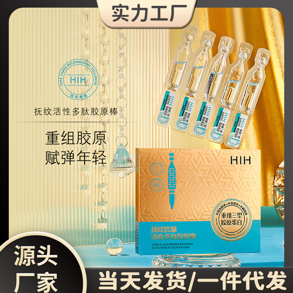 HIH tongkat kolagen polipeptida aktif anti-keriput, pelembap halus memudarkan garis halus esensi pelembap kulit lembut