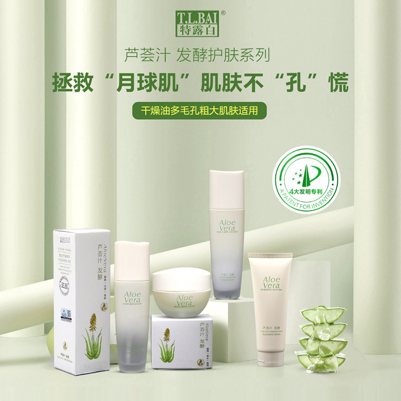 Truent White Aloe Juice Perawatan Kulit Set Empat Potong Pelembab Pelembab Pelembab Cahaya Peremajaan Kulit Pelembab Krim Pembersih Wajah