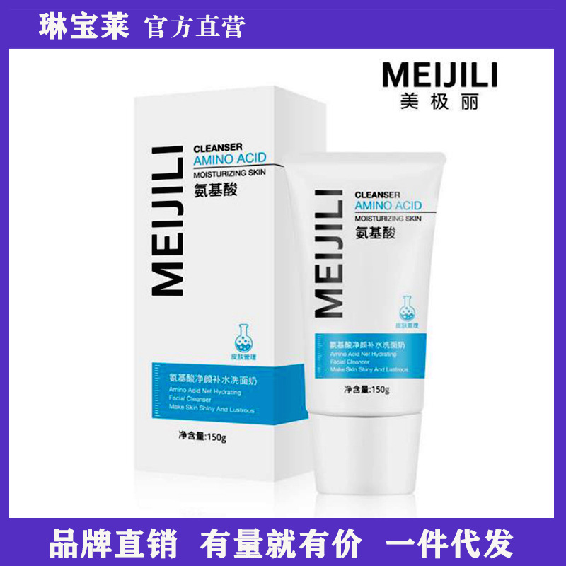 Meijiili Pembersih Wajah asam amino, pembersih wajah pembersihan mendalam melembabkan kontrol minyak mencerahkan warna kulit