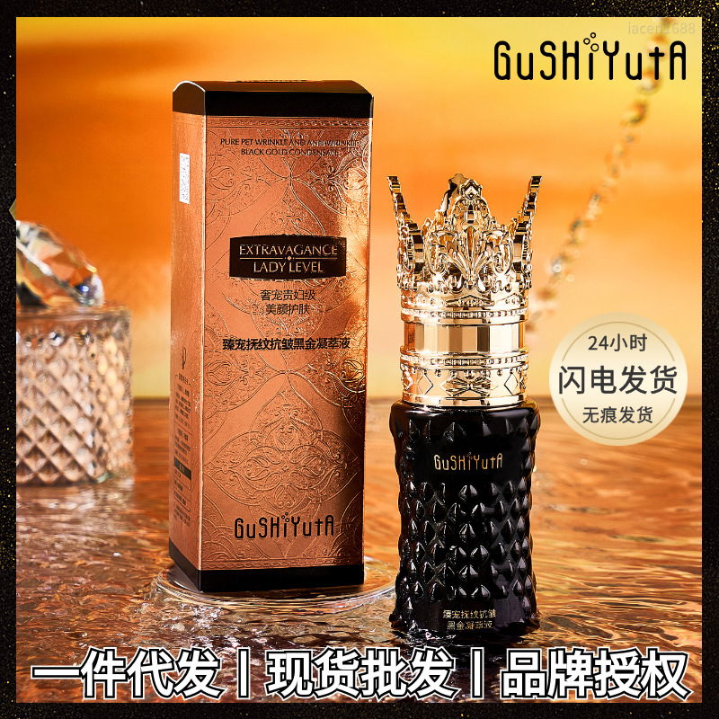 Story dan dia esensi emas hitam hewan peliharaan halus pelembab memudarkan garis-garis halus mencerahkan esensi