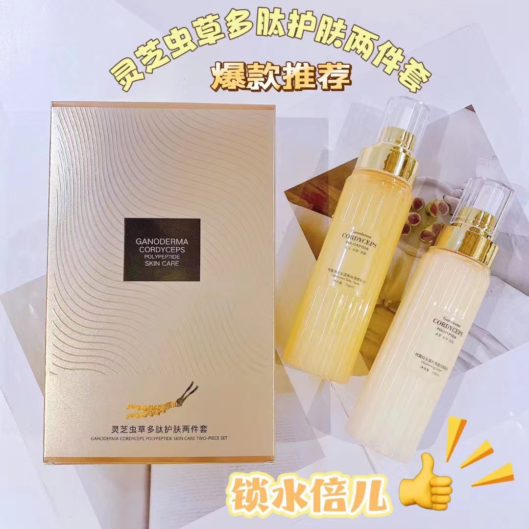 Ganoderma lucidum Cordyceps Losion Perawatan Kulit polipeptida set dua potong Losion Toner pelembap transparan pabrik siaran langsung pengiriman batch