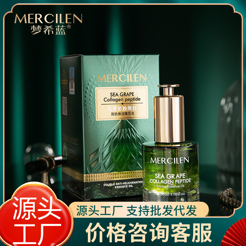 Mengxi minyak Esens Pelembab 30ml, minyak esensi anti peremajaan ganda peptida kolagen anggur laut biru