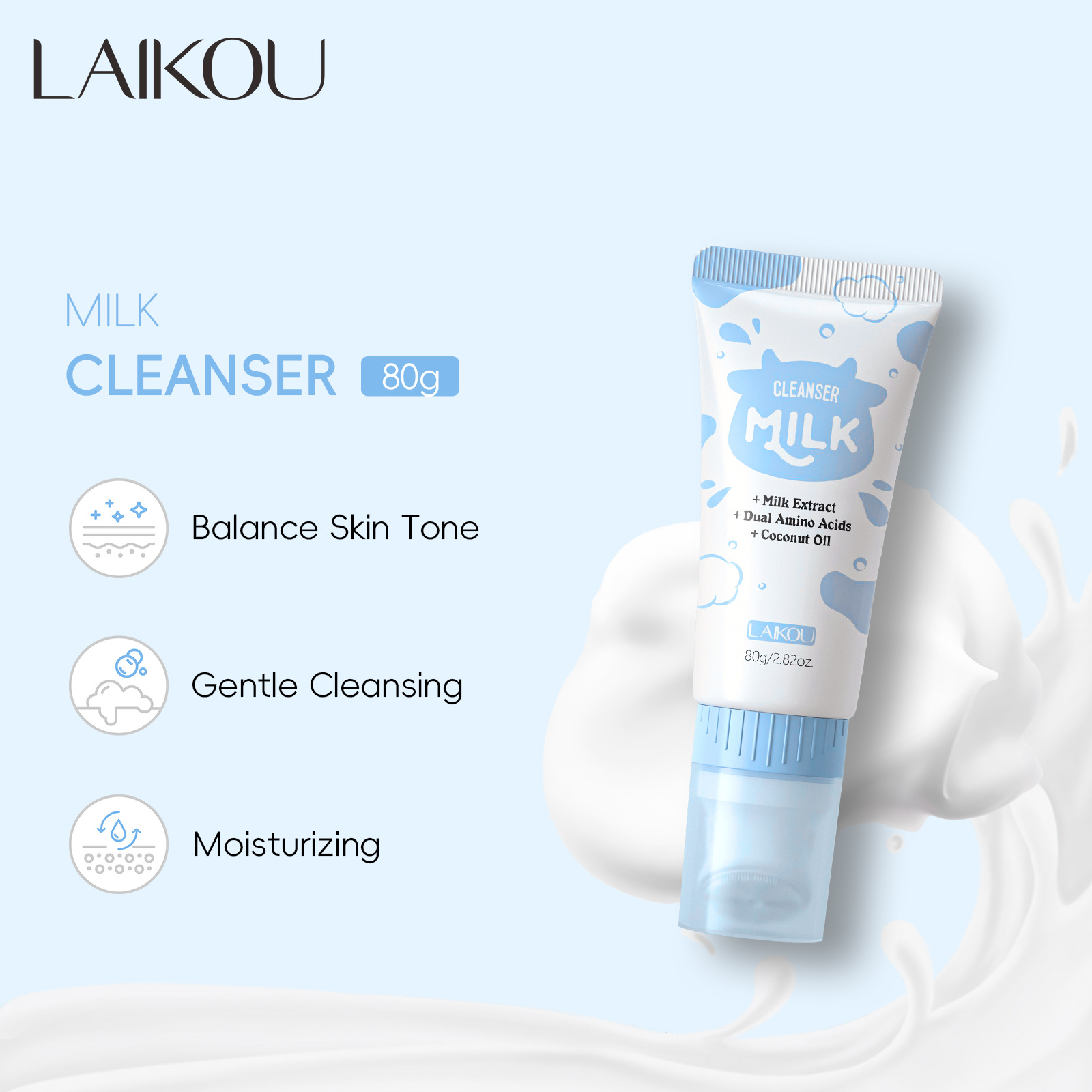 Cross-border susu LAIKOU pembersih wajah 80g pabrik pelembap pembersih pori hidrasi grosir
