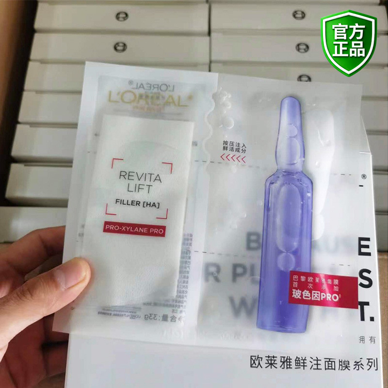 L'Oreal memperkenalkan masker ampul asam hialuronat produk perawatan kulit yang menghidrasi dan melembapkan, produk asli grosir untuk wanita.