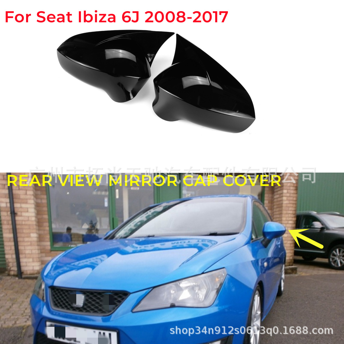 Cocok untuk 08-17 kursi Ibiza MK4 dimodifikasi penutup cermin spion penutup klakson