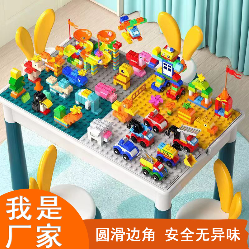 Blok bangunan anak-anak meja multi-fungsi kompatibel dengan Lego partikel besar blok bangunan puzzle anak laki-laki mainan rakitan generasi splicing rambut