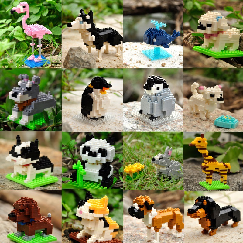 Zhiying a-d mainan blok bangunan hewan panda parrot jerapah anjing pudel sosis kelinci blok hewan