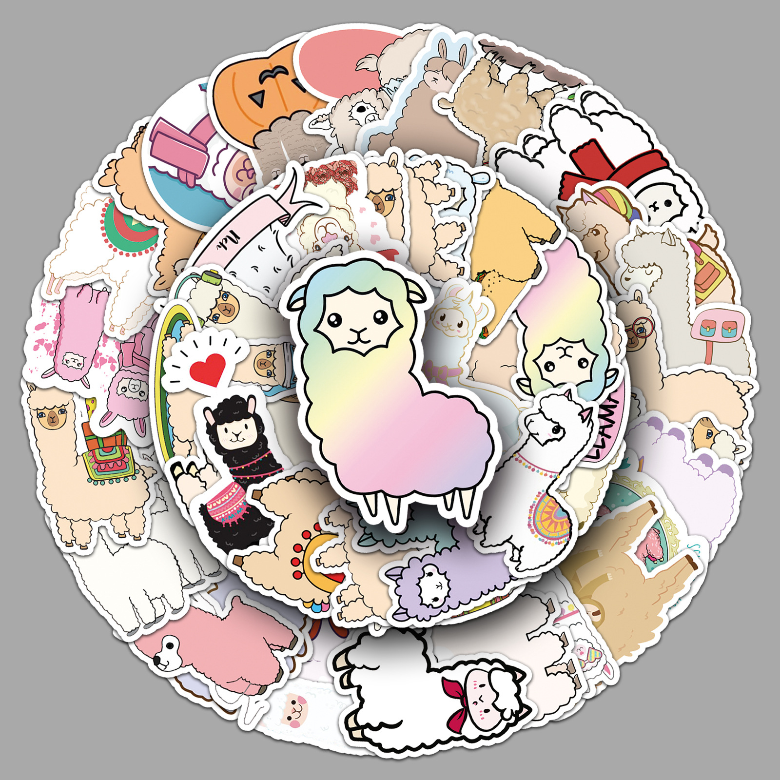 Stiker kartun alpaca, stiker kreatif lucu kartun alpaca ins, stiker alat tulis kulkas skuter
