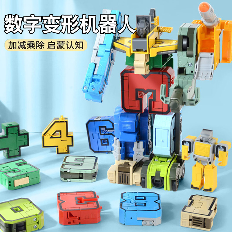 Xinlexin robot transformasi digital anak-anak, dinosaurus transformasi huruf blok bangunan mecha mainan anak laki-laki belajar pendidikan