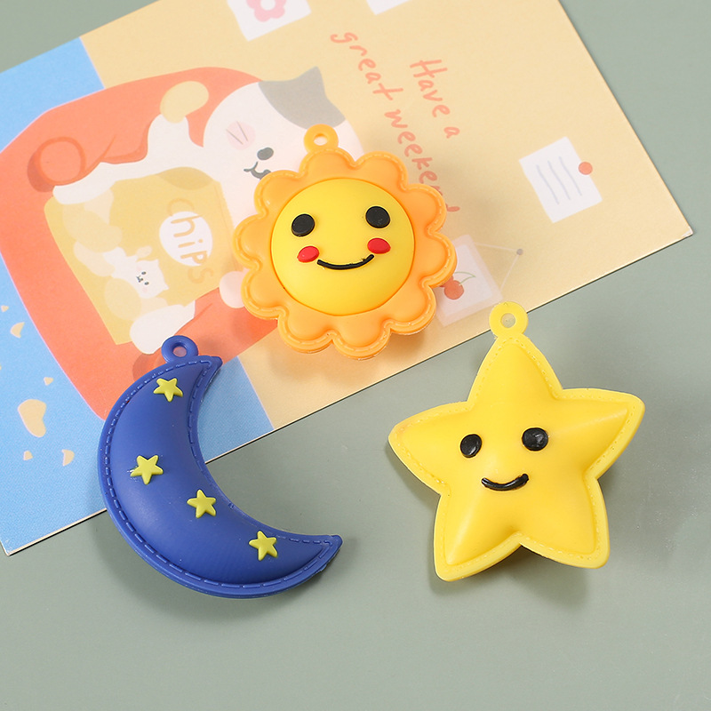 Kreatif tersenyum wajah matahari bulan bintang gantungan kunci PVC fleksibel lem tas liontin boneka mesin hadiah grosir
