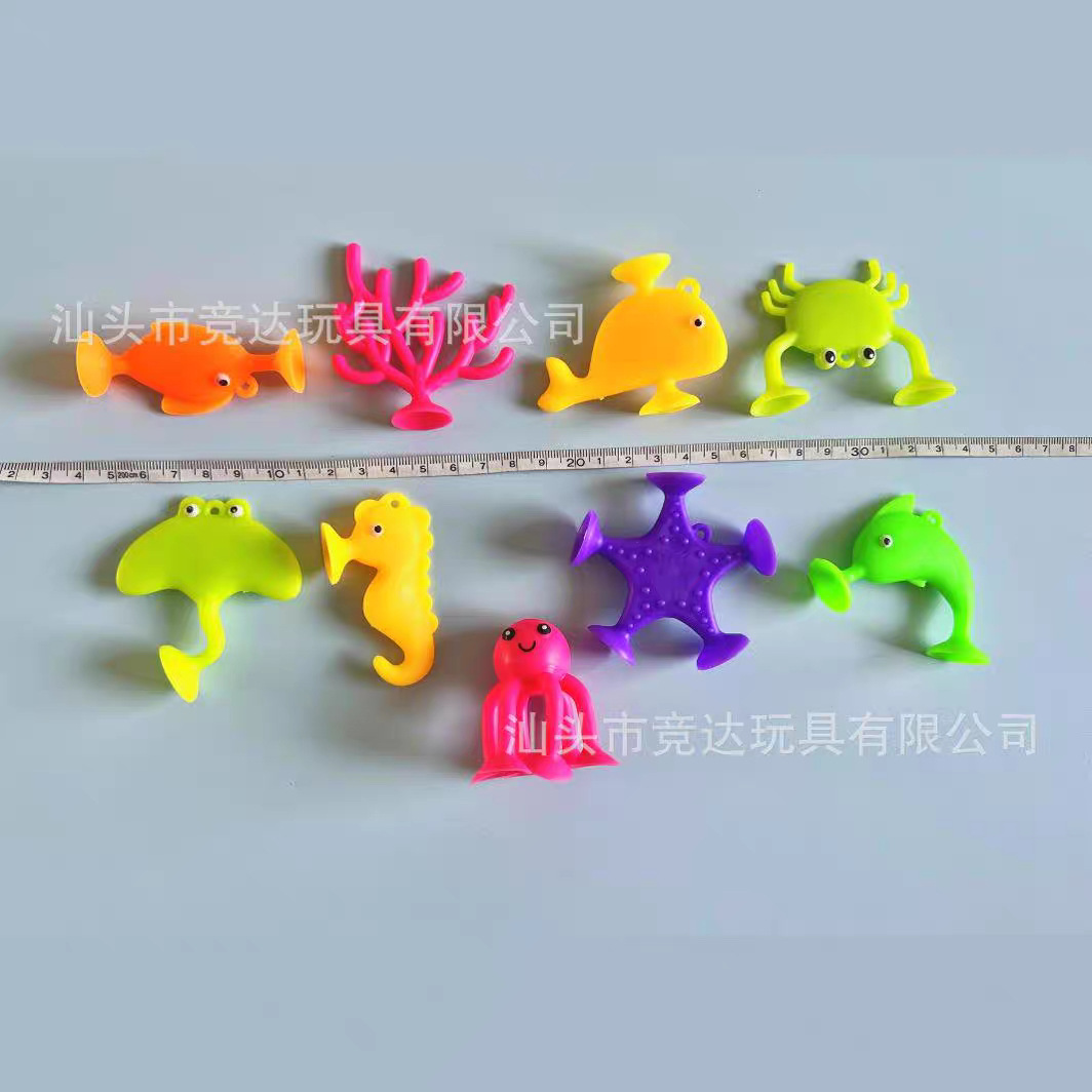 Cross-border diskon besar cangkir isap boneka hewan laut silikon hisap blok bangunan mainan mandi interaksi jendela perjalanan