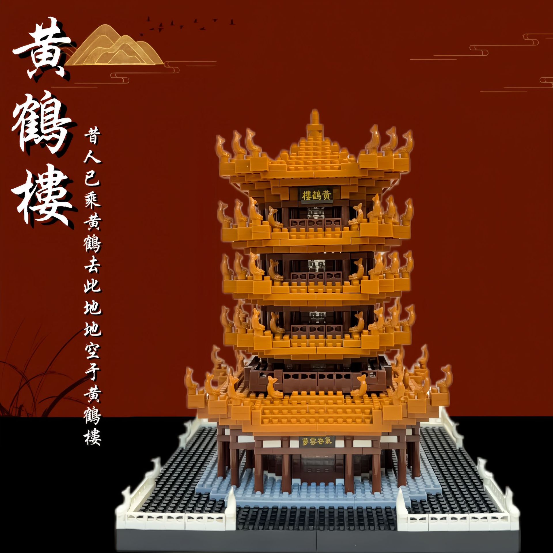 Kompatibel dengan Lego blok bangunan puzzle kuning Crane Tower kesulitan tinggi kecerdasan mikro partikel dirakit arsitektur Cina mainan anak laki-laki