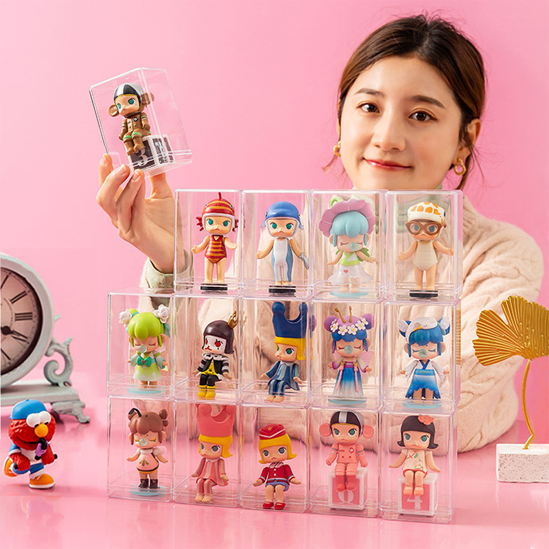 Kotak hadiah boneka Desktop tahan debu transparan plastik penutup kotak tampilan dekoratif berdiri kotak penyimpanan buatan tangan akrilik