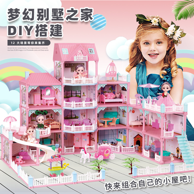 Rumah boneka anak perempuan, grosir rumah boneka mainan putri anak perempuan istana besar villa rumah hadiah ulang tahun anak-anak