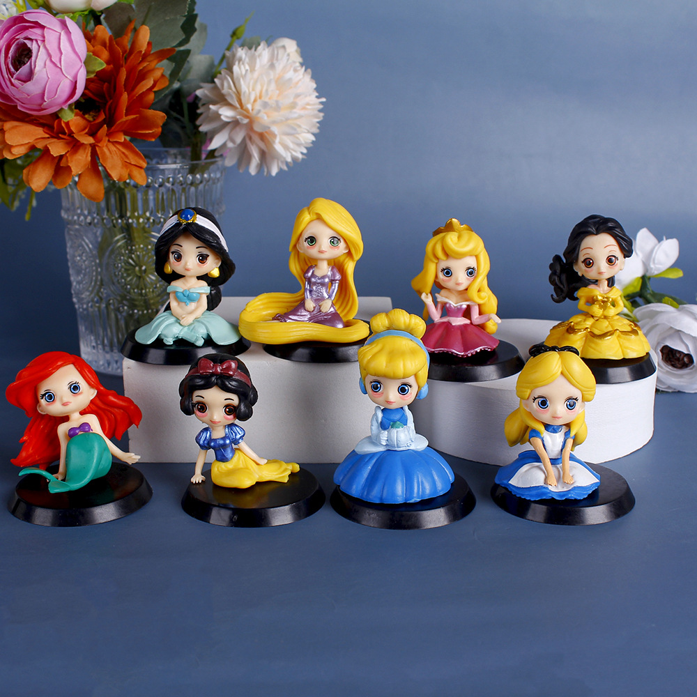8款Q版大眼睛公主美人鱼白雪灰姑娘贝尔人偶摆件蛋糕装饰手办玩具