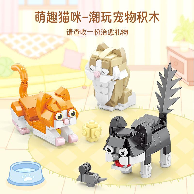Kompatibel dengan Lego Balok Lucu Anak Kucing Kecil Oranye Kucing Tiga Bunga Boneka Kucing Mainan Anak Perempuan Hadiah Grosir