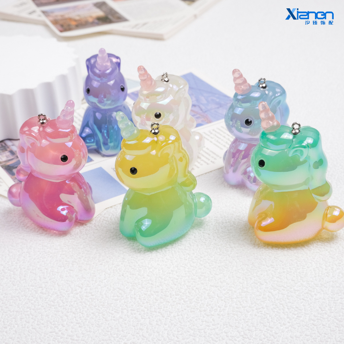 Aksesori dekorasi kotak boneka, tas gantungan kunci diy plastik berlapis warna UV Dekorasi mesin boneka kotak buta unicorn pelangi bercahaya gradien